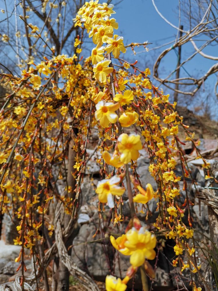 韵沟羊鼻岭,腊梅花的暗香,还在空中浮动。迎春花,就肆意的盛开了!