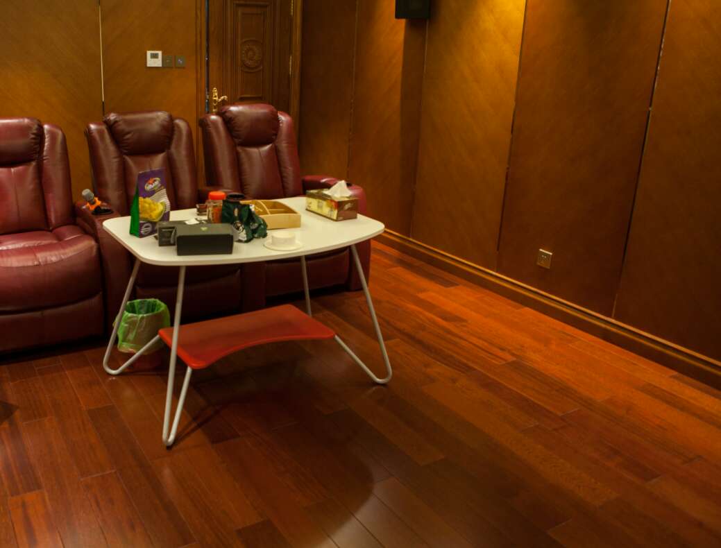 地板有些地方似流动的波浪,结构细腻而均匀,木材厚重,有着极高的稳定性和耐腐性。而且落腺豆这种材质的色泽温暖舒爽,纹理庄重自然,仿如岁月历练后的恬静丰满,铺装在家中,能营造一种温馨亲和的感觉。