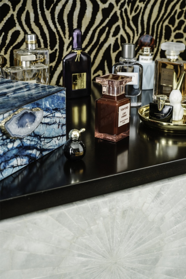 热衷于香水收藏的女主人,将造型各异的香水瓶子作为了卧室及其空间各个角落的装饰物,给人一种探索的乐趣。