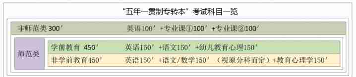 2.非学前教育:英语(150分)+语文/数学(150分,根据文理科而定)+教育心理学(150分),总分一共450分。